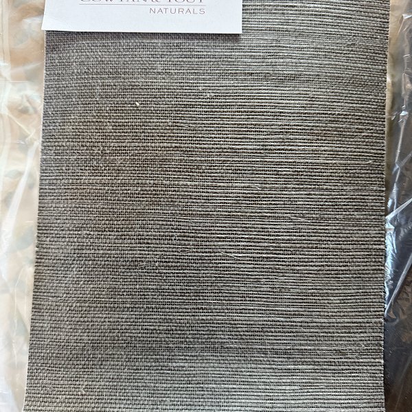 Budget-friendly textured vinyl wallpaper with grasscloth-style embossed pattern in sophisticated gray tones. This material mimics the look of natural woven grasscloth at an accessible price point. Pre-pasted application method allows for efficient installation.