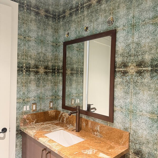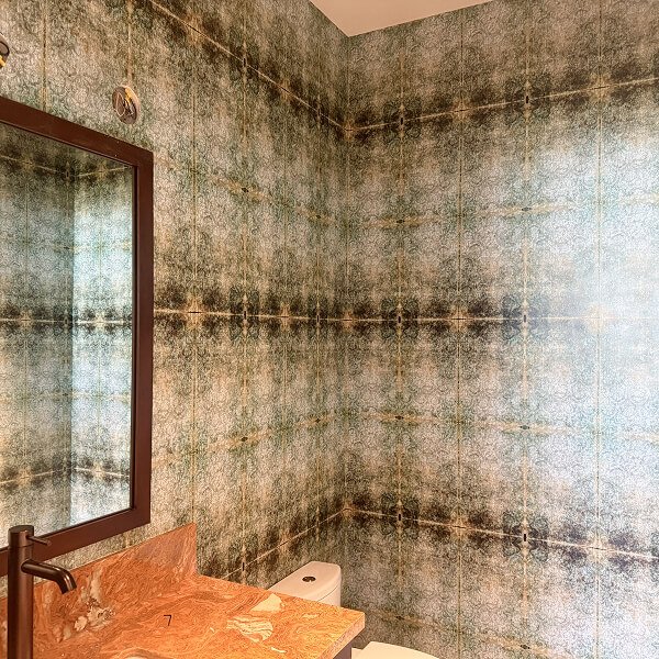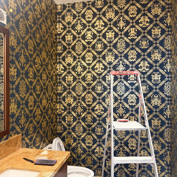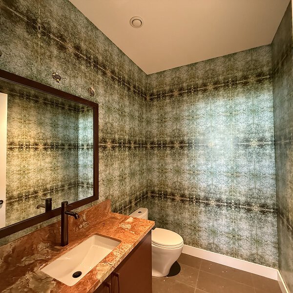 Premium designer wallcovering specified for luxury Boulder estate guest bathroom environments. High-quality substrate provides exceptional durability and maintains sophisticated appearance. Surface designed for gentle cleaning while preserving pattern integrity and texture depth. Specialized wallpaper-on-wallpaper installation technique ensures enhanced longevity and dimensional stability. Pattern and color maintain pristine appearance in controlled bathroom environment. Elite-level craftsmanship ensures seams remain invisible and pattern registration stays perfect. Expected lifespan of 15-20 years with appropriate maintenance in high-end residential applications. Two-year craftsmanship warranty protects investment in premium designer materials and installation quality.