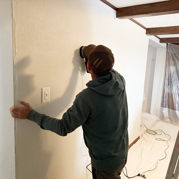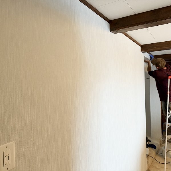 Two-person crew completed 312 square feet across three basement bedroom walls in 8 hours of continuous work. Extensive surface preparation phase consumed significant time but created foundation for professional installation results. Orange peel texture removal, settling crack repair, corner leveling, and trim work addressed typical basement wall challenges. European-trained installation techniques ensured systematic execution maintaining quality throughout prep and installation phases. Homeowner extremely satisfied with transformation from rough textured walls to smooth professional finish.