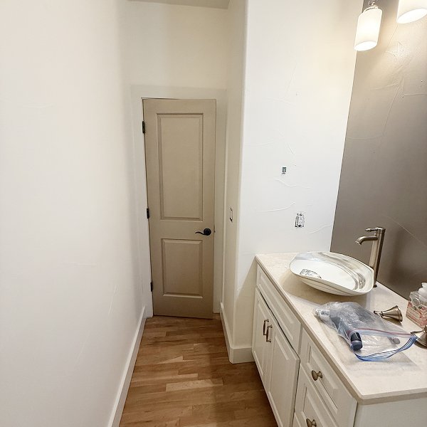 • Professional trimming around modern light fixtures and bathroom hardware