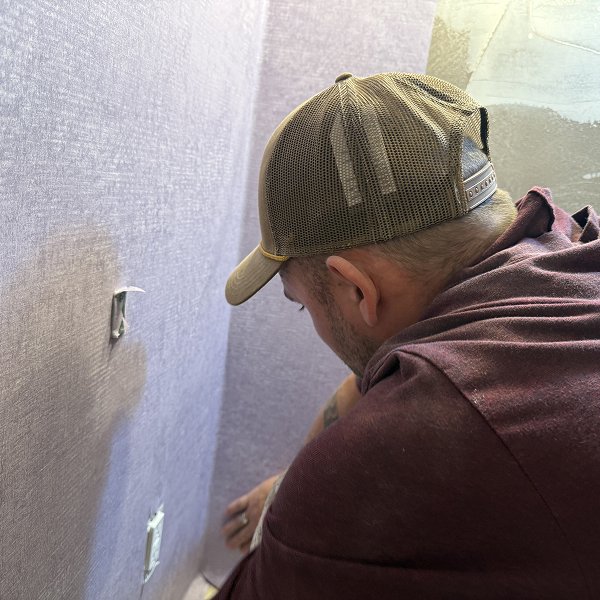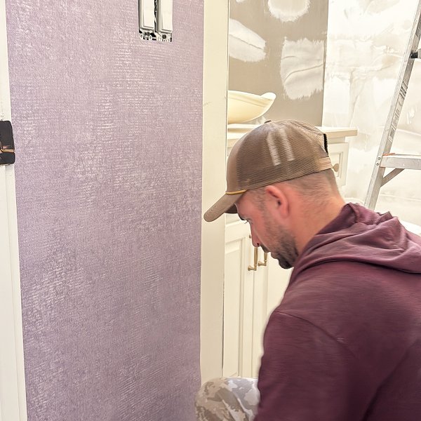 Velvety textured wallpaper demands perfect surface preparation - this material reveals every imperfection underneath. We knew comprehensive prep work would consume significant time but would deliver the foundation for professional results. The soft purple color the homeowner selected would show every detail of our surface work, making thorough preparation essential rather than optional. This is where European-trained approach differs from quick installations - we invest time in steps that aren't immediately visible but determine long-term results.