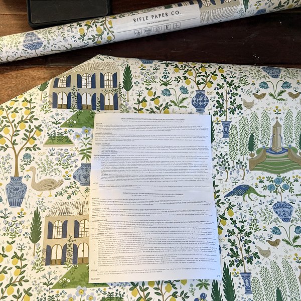 Premium wallcovering featuring two distinct patterns from leading manufacturers. Second-floor hallway utilizes Quiet Vista collection with light, nature-inspired design on quality substrate. Powder room showcases vibrant Camont pattern from York Wallcoverings. Both materials feature paste-the-wall application method for professional installation.