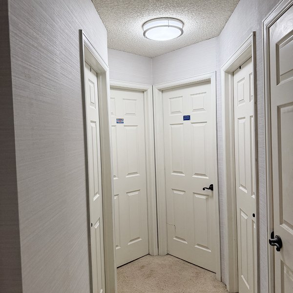 Our team arrived at the Highlands Ranch residence at 8:00 AM and immediately began the intensive preparation phase. The project area included a 144 sq ft hallway and a 116 sq ft powder room, both of which required significant surface restoration to accommodate premium York Wallcoverings.